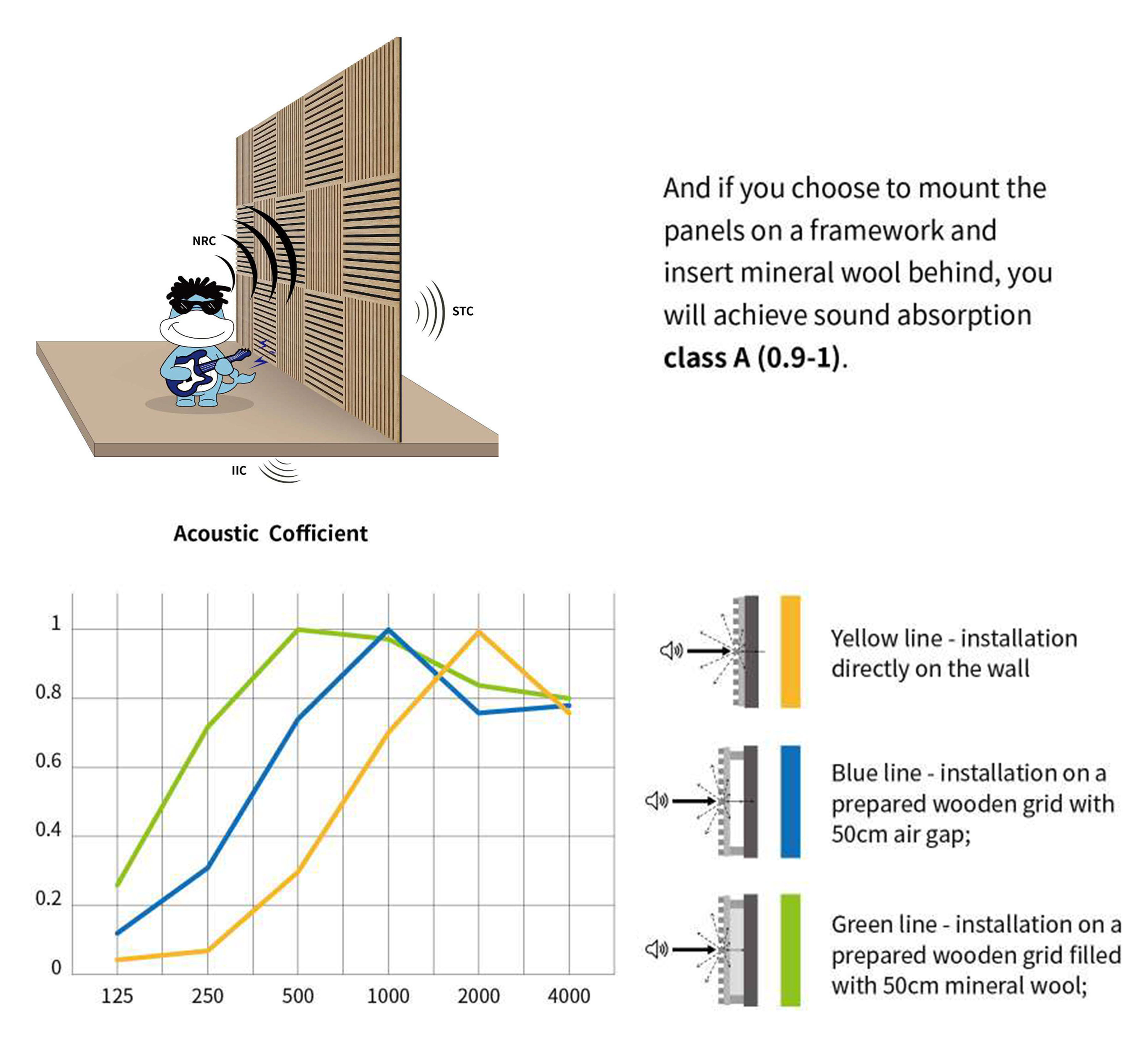 - Type C: Screwed into 1.8" timber battens for enhanced sound absorption
