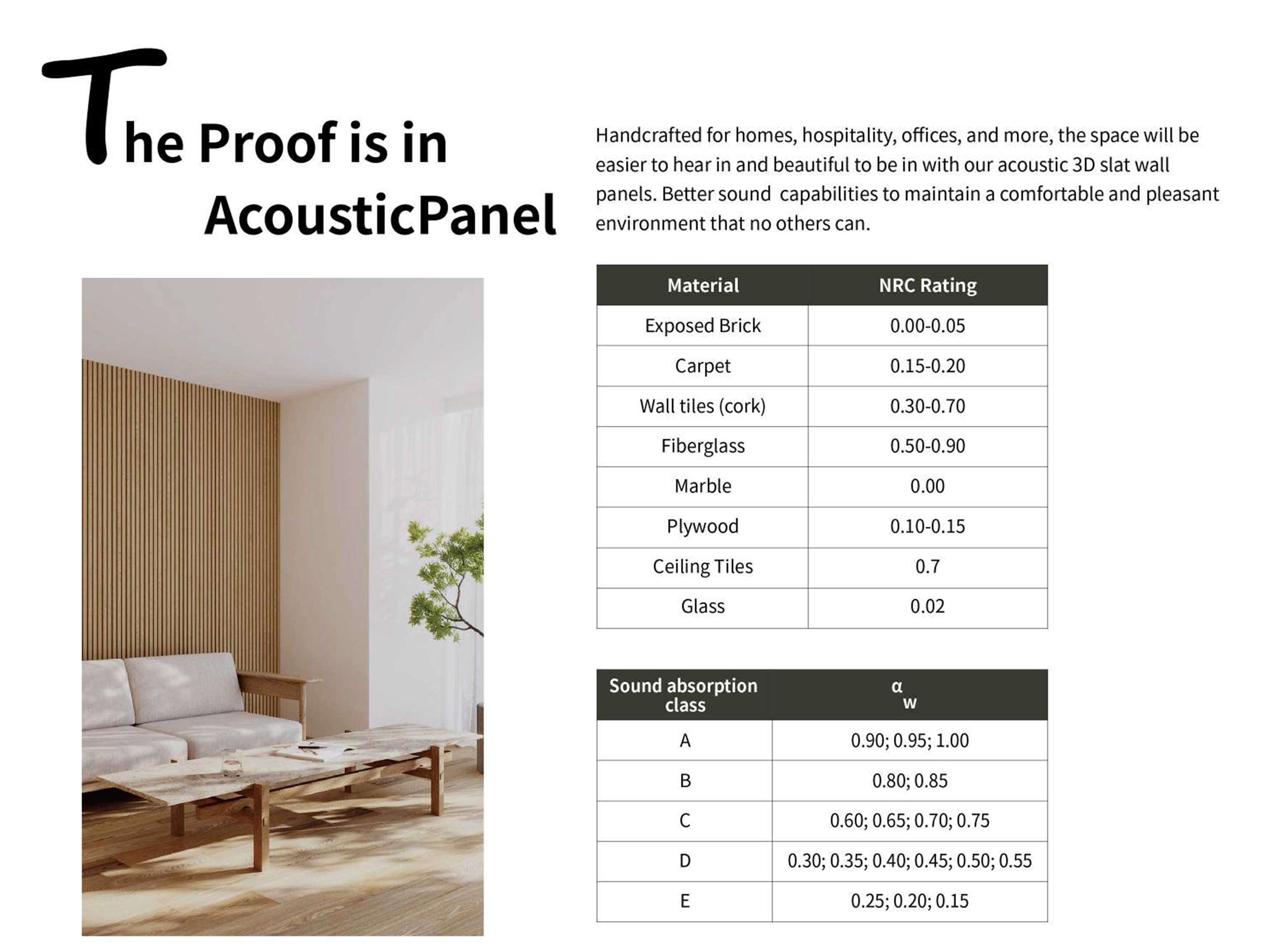 • Acoustic Rating: NRC of 0.8, achieving Class A sound absorption (0.9–1.0 with mineral wool backing).
